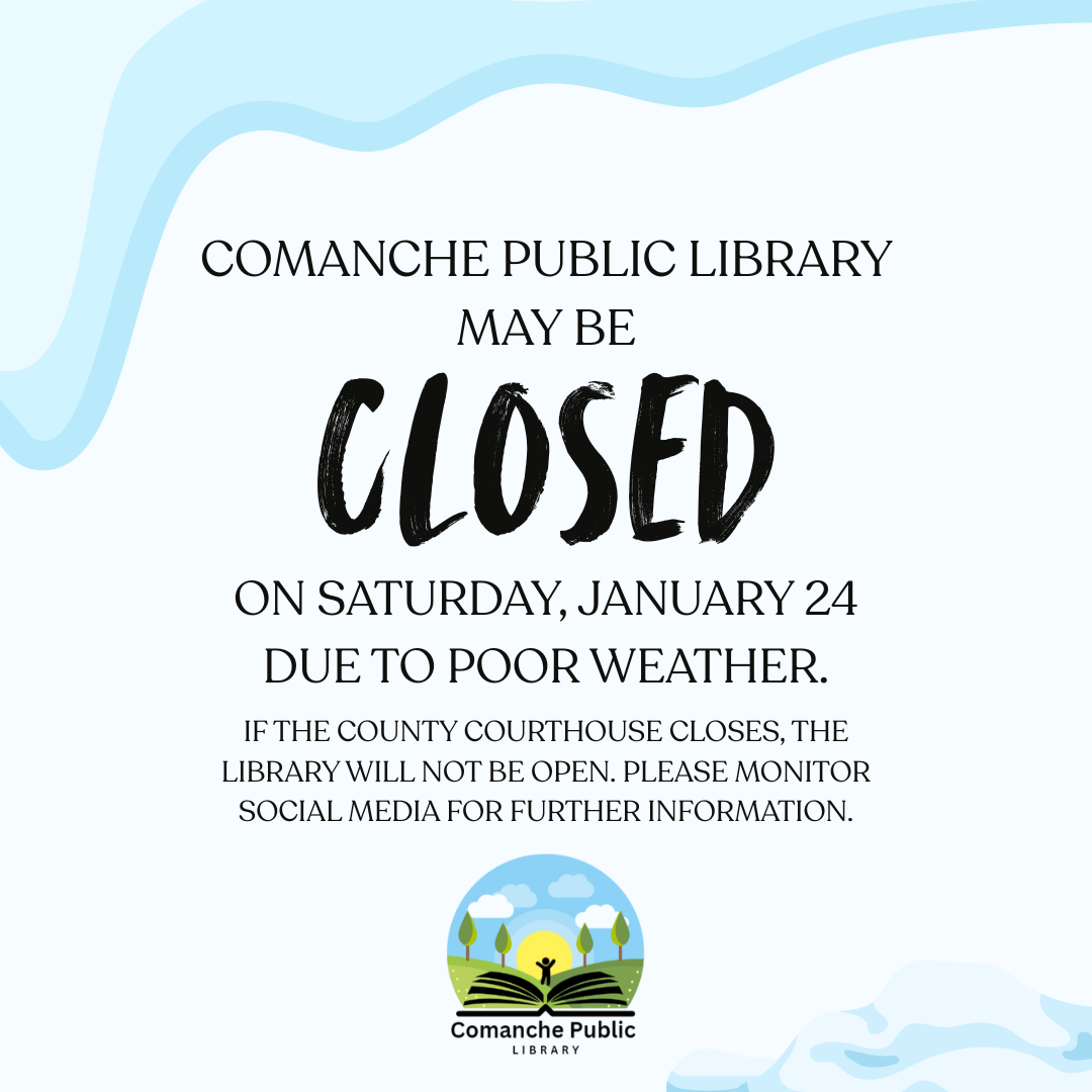 Possible Bad Weather square Post.pnghttps://www.comanchepubliclibrary.org/site-assets/images/possible-bad-weather-square-post.png/viewhttps://www.comanchepubliclibrary.org/site-assets/images/possible-bad-weather-square-post.png/@@images/image-1200-89350fdea0dfa50c8f142a1f49f55a72.png